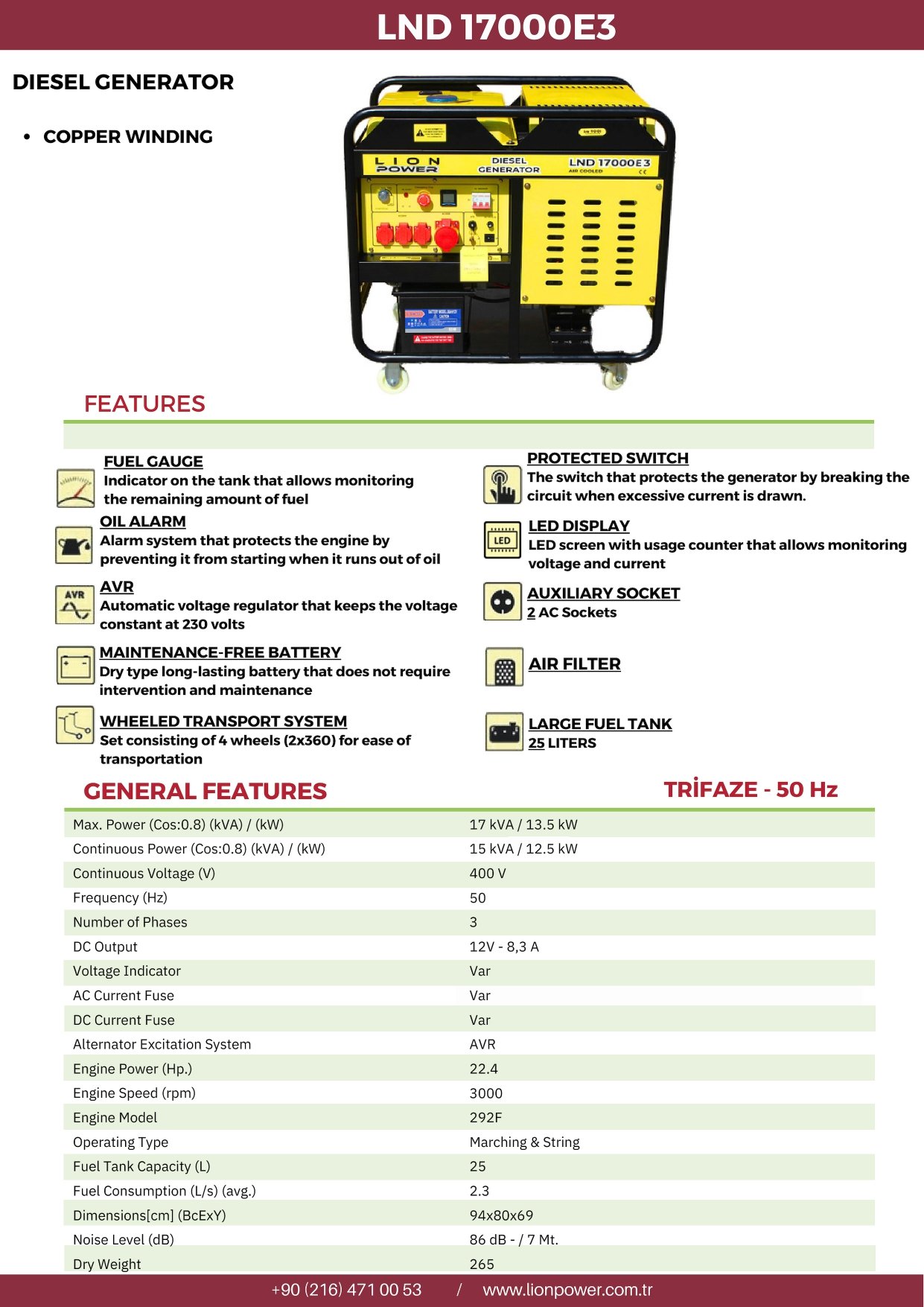 LION POWER LND 17000E3 DİZEL JENERATÖR