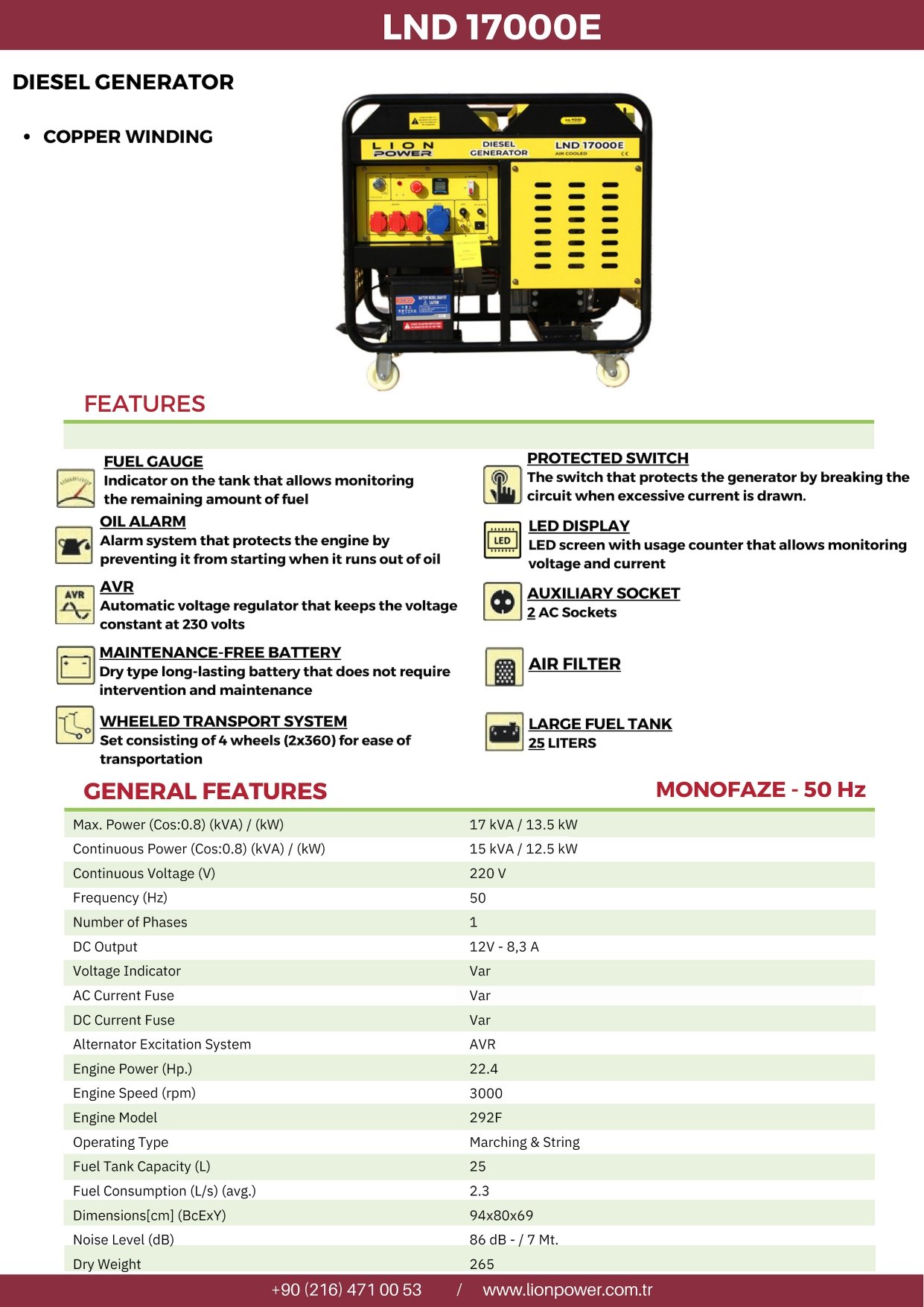 LION POWER LND 17000E DİZEL JENERATÖR