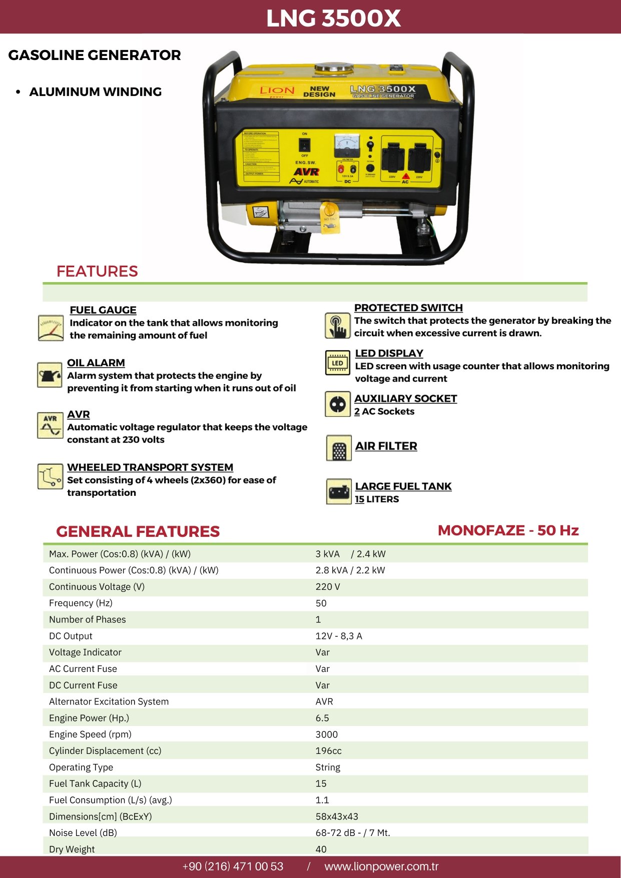 LION POWER LNG 3500X BENZİNLİ JENERATÖR