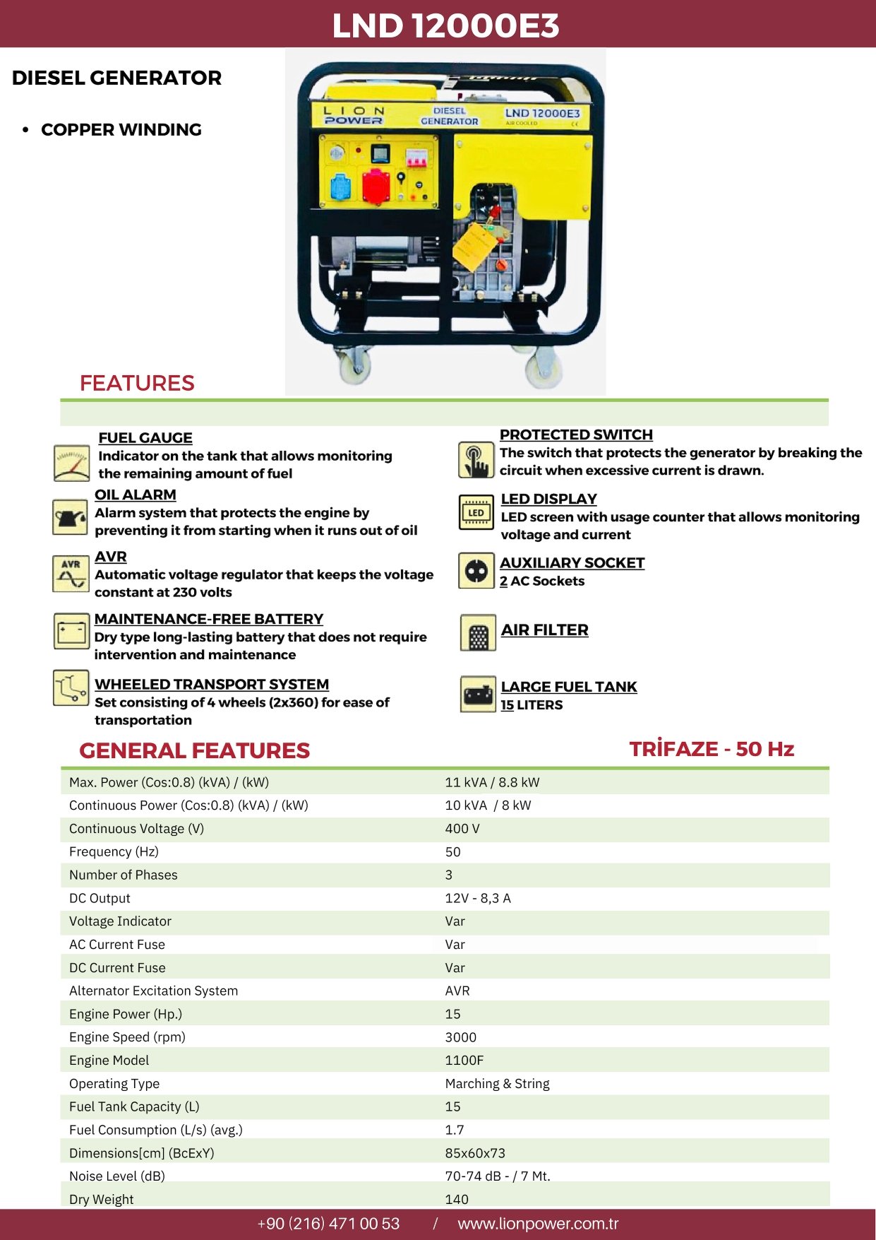 LION POWER LND 12000E3 DİZEL JENERATÖR